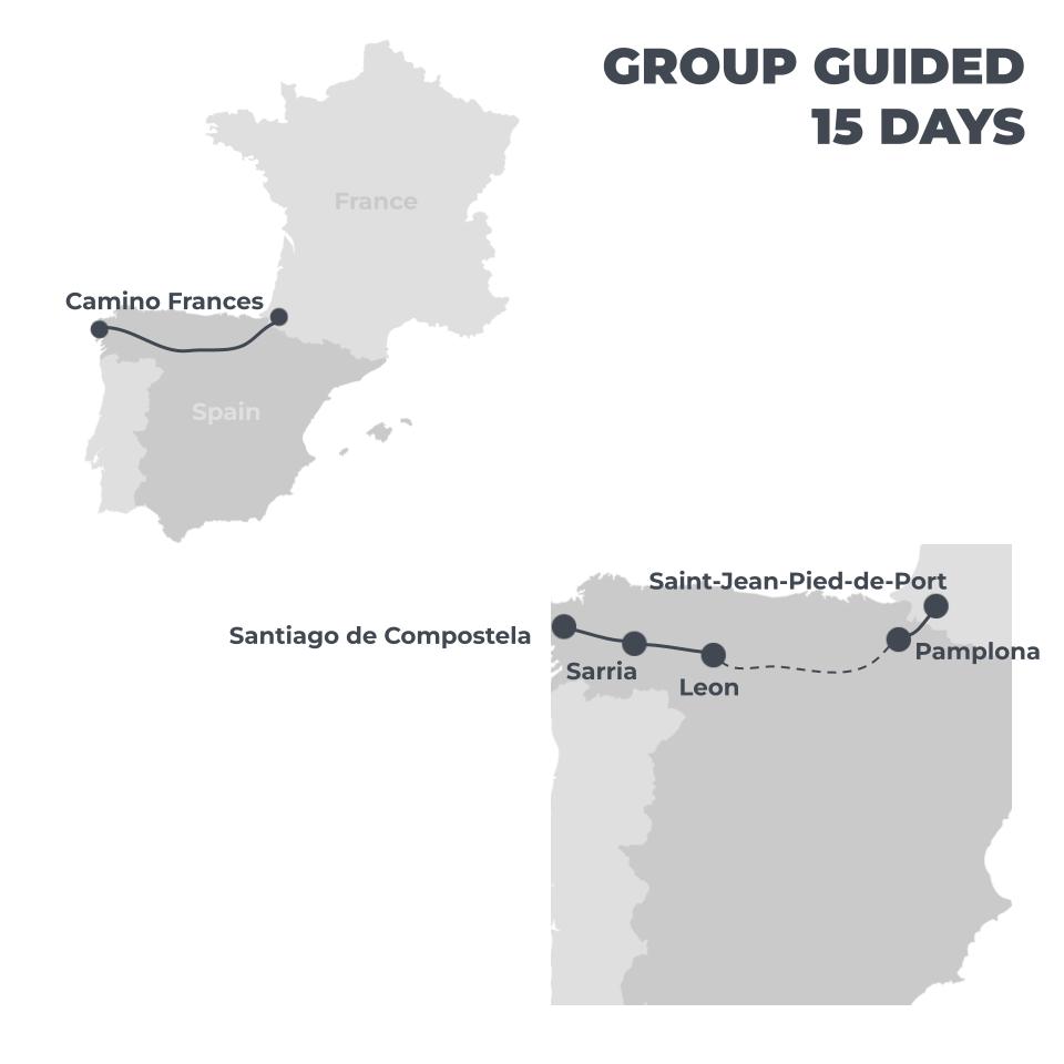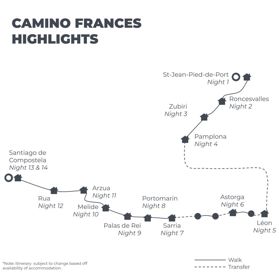 - Walk the full Camino Frances route (812km) from St Jean to Santiago de Compostela
