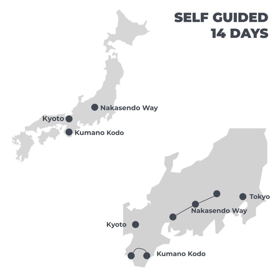 For your safety and well-being, we are unable to accept bookings for solo travellers on our self-guided Kumano Kodo, Nakasendo & Kyoto Walk. The remote nature of some tracks and limited mobile reception mean that walking alone presents a higher risk in case of emergencies.