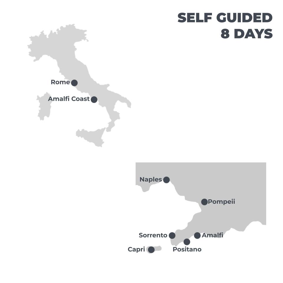 Explore the contrasts of the Amalfi Coast. Visit the swish towns of Ravello, Positano and catch a ferry to Capri. Stay in rural Agerola and hike in the Monti Lattari mountains.