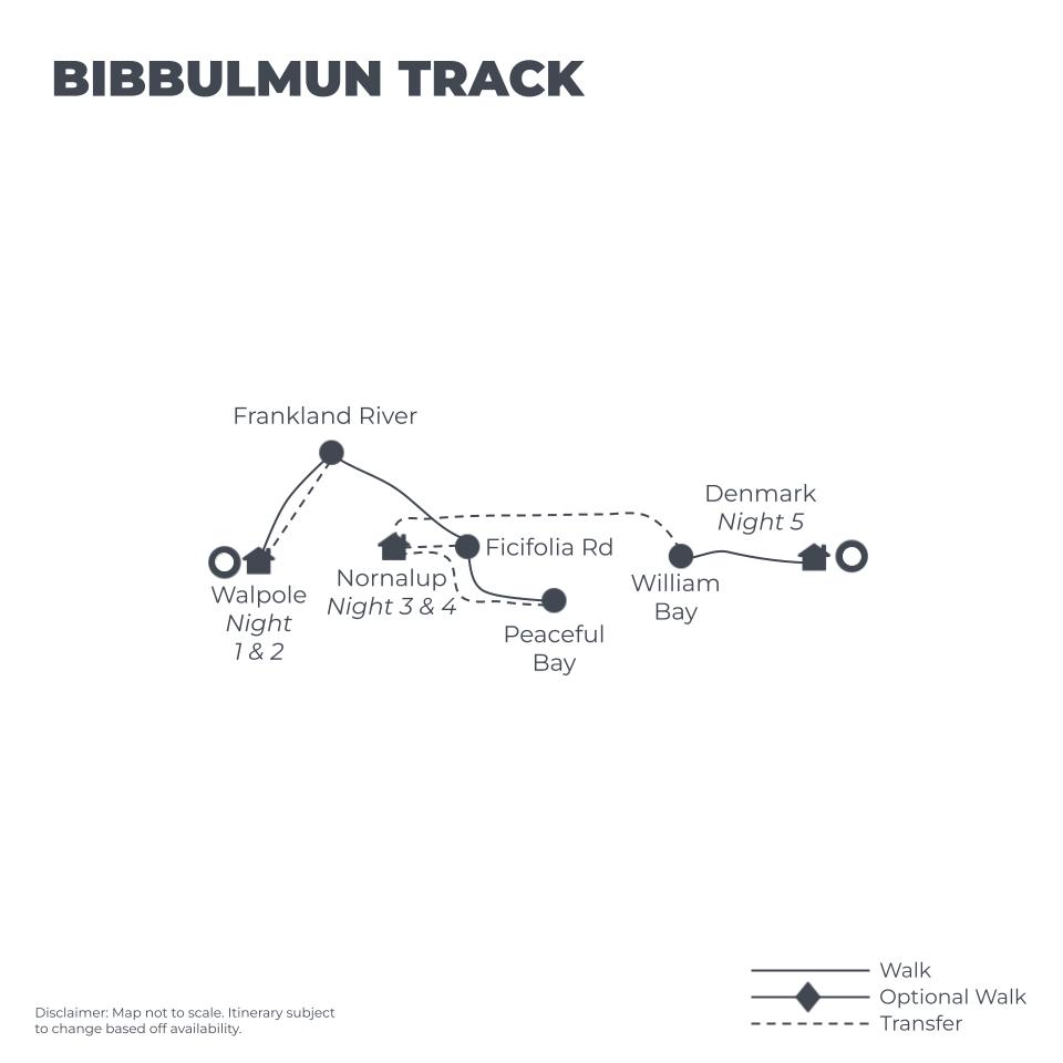 As an alternative, you can take the TransWA bus from Albany Railway Station to Walpole, which takes approximately 1 hour and 45 minutes and departs once daily.