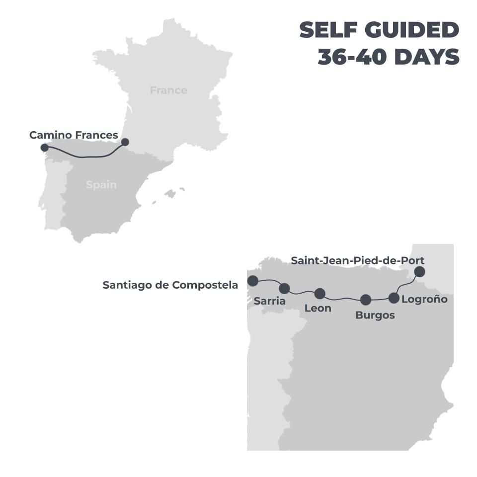 Complete the epic, historic Camino Frances in 38 days, walking from the French town of Saint Jean Pied de Port to Spain’s Santiago de Compostela.