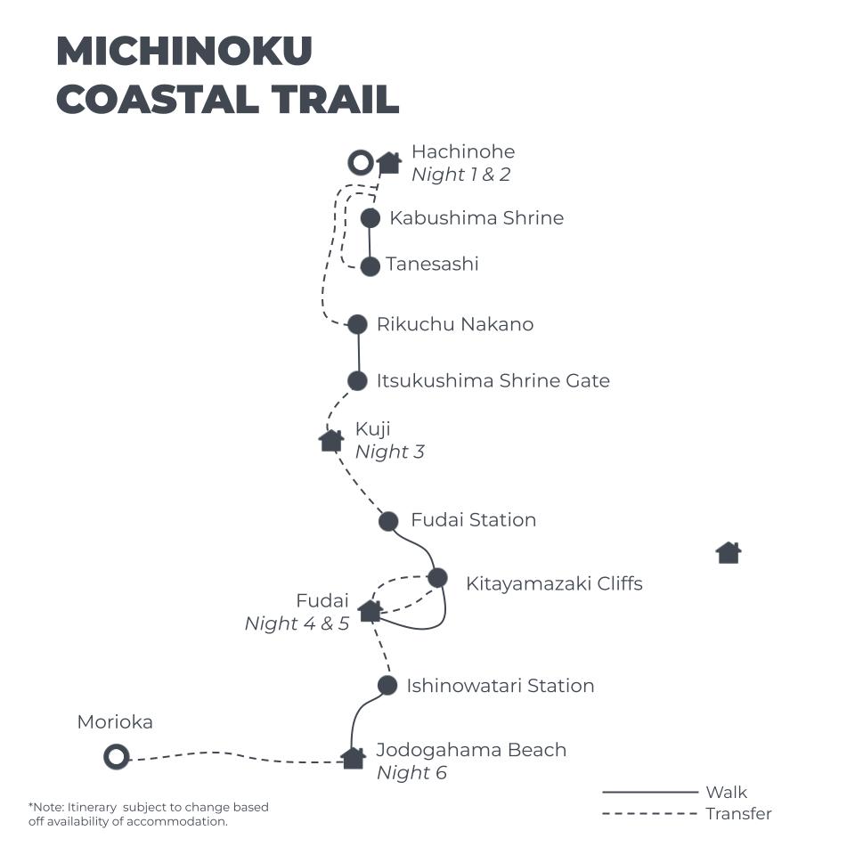 This walk starts in Hachinohe on Day 1 and ends in Morioka. You will need to get yourself to and from the start and end of your walk. The journey from Tokyo to Hachinohe takes around 3.5 hours.  To make it easy, we have collated some useful information that will assist you in planning for your travel.