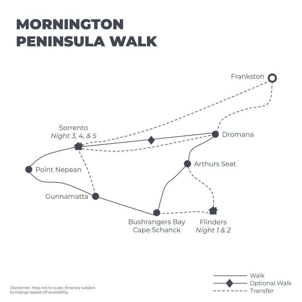 The walk was well organised for us by Auswalk. It was varied, with untouched national park settings and the vastness of the Mornington Peninsula back beaches. Our accommodation was very comfortable supported by generous and attentive hosts. The sherpa service was also efficient and very friendly. We enjoyed the walk very much and look forward to the next one.