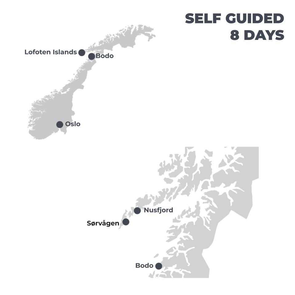 Your adventure begins in Bodø, Norway, a picturesque town easily accessible by air. Fly into Bodø Airport (BOO) via Oslo International Airport (OSL) with multiple regional flights available. Upon arrival, a short drive will take you to your accommodation, where you can settle in and prepare for the journey ahead. Be ready to immerse yourself in the striking landscapes of the Lofoten Islands, starting with a scenic ferry transfer to Moskenes on Day 2.