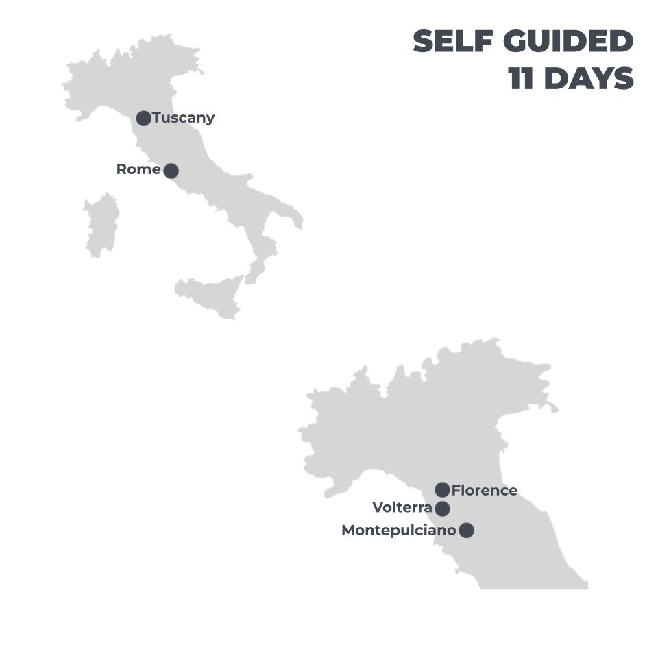 This walk starts in Volterra and ends in Montepulciano. Volterra does not have an airport, but nearby Siena has excellent train links to Pisa, Florence, and Rome airports. We can arrange a private transfer for you from Siena, or you can use the public transport links to Volterra. Siena does not have an airport.